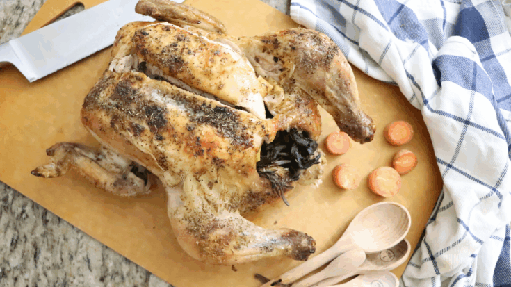 Tip #1 – Start with a good, organic pasture-raised chicken, about 4 1/2 pounds. I say this all the time but it’s so true, when it comes to food you get what you pay for. There are some things at the store that I believe you can skimp on buying the nice stuff. In fact, that would make a great video/blog post so maybe I should write about that. Bananas, for example. I’m not going to spend extra money on those being organic when the skin of a banana is so thick. I’m not as concerned about pesticides getting into the food. However, meat is not one of those items.